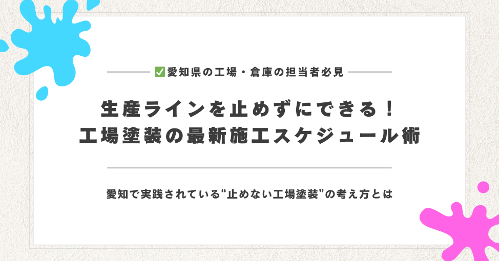 愛知は自動車部品や精密機械など製造業が集積している地域のため、工場塗装=生産ライン停止というイメージを持たれがちです。
